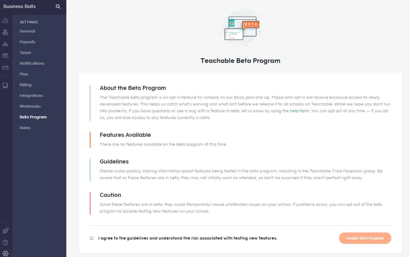 If you opt into the beta program (which requires that you’re on the Basic paid plan or up) you can get access to beta features. The downside is that the beta features could cause issues on your school. You’ll want to think carefully before ticking off that checkbox.