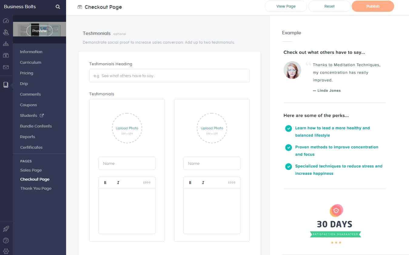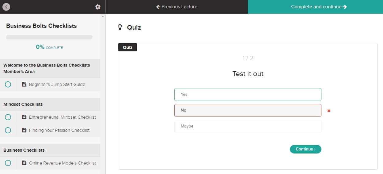 I recently used Teachable to set up a free course. It’s not as much a course as a membership area with a collection of checklists.