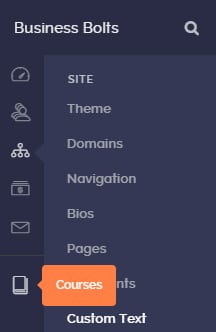 Once done you’ll have to go back to your course, which you can do by going to the last icon on the left menu. It looks like a couple sheets of paper. If you hover over that, you’ll see that’s a link to all your courses: