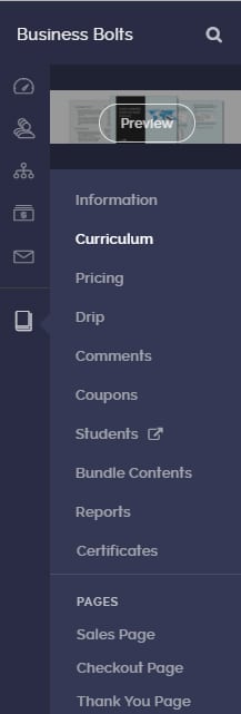 Click on that and you’ll go back to your course. When your course curriculum is set-up the way you’d like, just go down the menu. Most of these won’t take too long to set-up.