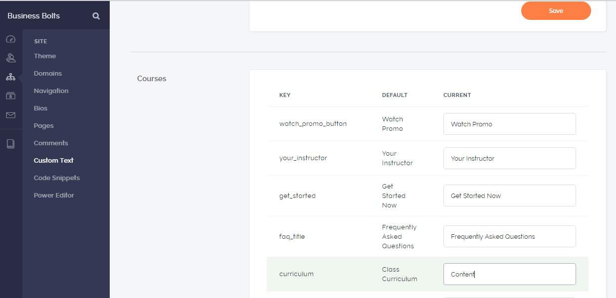 Once you click on that Custom Text link, you’ll see a lot of options. There’s a lot of text you can change on this page. The text I needed to change is under the Courses heading.
