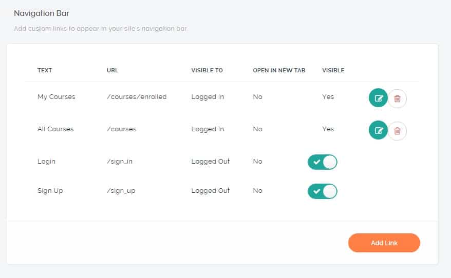 The navigation link takes you to a page where you can change which page acts as your Teachable homepage. So if you only have one course, you can use that sales page as the homepage (which is probably a good idea).