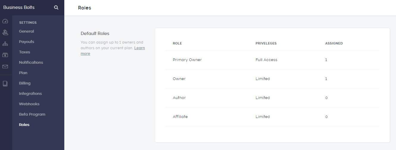 The Roles link takes you to a page where you can assign user roles (depending on the plan you’re on).