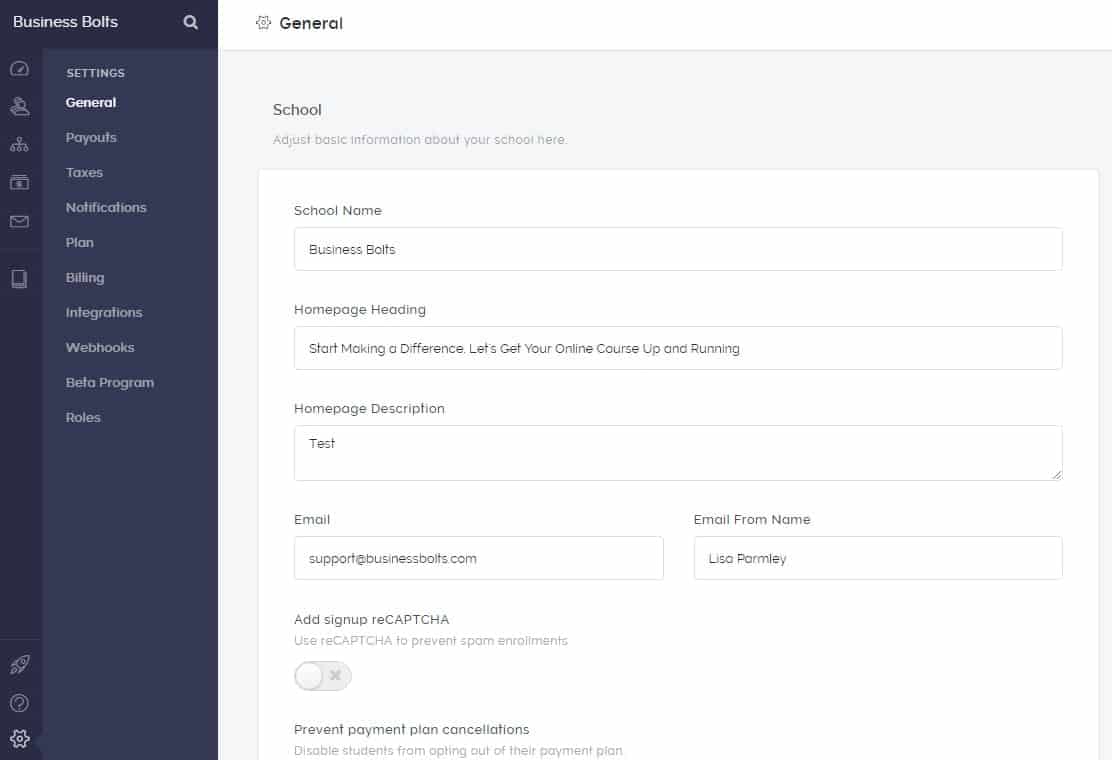 The thing is, if you create more than one course, then you need a ‘school’. It’s your collection of courses. Even if you’ve just got one course, that course is in your school.