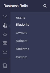 The students link takes you over to the Users page and just lists all your students. There’s nothing to do here, but it’s good to know where they’re listed.