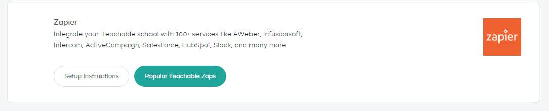 The integrations link allows you to integrate the Teachable platform with another by simple ticking off a checkbox and entering a pass code.
